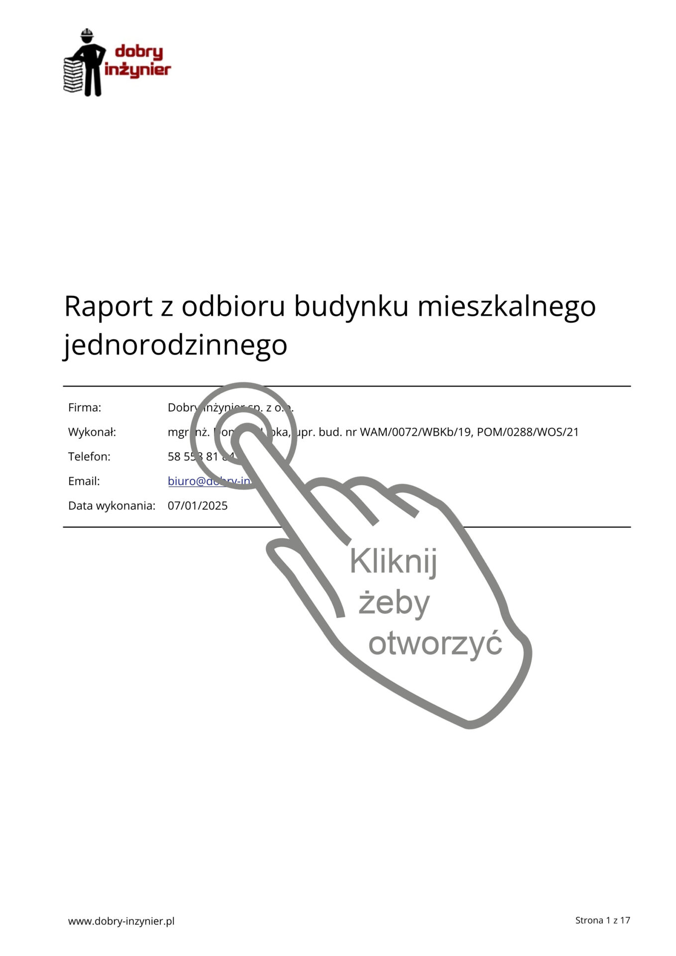Z każdego odbioru wykonywany jest raport w formie elektronicznej ze zdjęciami usterek. Przykładowy raport można obejrzeć po kliknięciu na zdjęcie po prawej stronie.