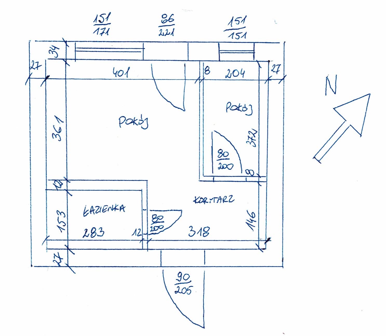 Jeśli nie masz powyższych dokumentów, wystarczy że sporządzisz szkic mieszkania z wymiarami ścian i okien (przykład widoczny obok). Rozumiemy, że nie każdy ma dostęp do dokumentacji budynku oraz nie każda dokumentacja przetrwała próbę czasu, dlatego przygotowaliśmy uproszczoną formę uzyskania świadectwa. Wszystkie szczegóły znajdziesz w formularzu wyceny i zamówienia świadectwa na dole strony.